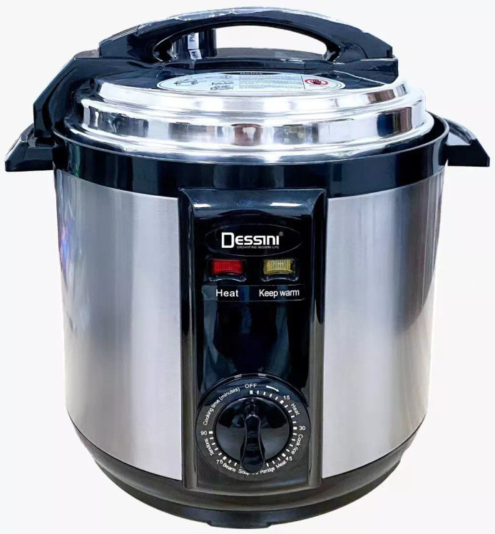 مشخصات زودپز برقی دسینی مدل 6666 توان مصرفی 1000وات ظرفیت 6لیتر مجهز به تایمر قابلیت گرم نگه داشتن لایه داخلی نچسپ سیستم ایمنی جنس بدنه استیل ضد زنگ جنس ظرف تفلون ظرفیت به نفر 8نفره
