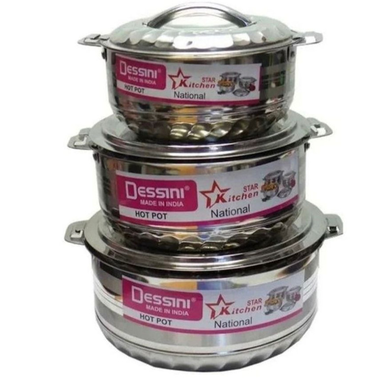 هات پوت دسینی ساخت هند سه سایز مختلف : لیتر ۳ونیم لیتر ۵ لیتر از مواد فولادی ضد زنگ غیر مغناطیسی با کیفیت بالا ساخته شده غذا تا چندین ساعت گرم و برعکس نگه میدارد